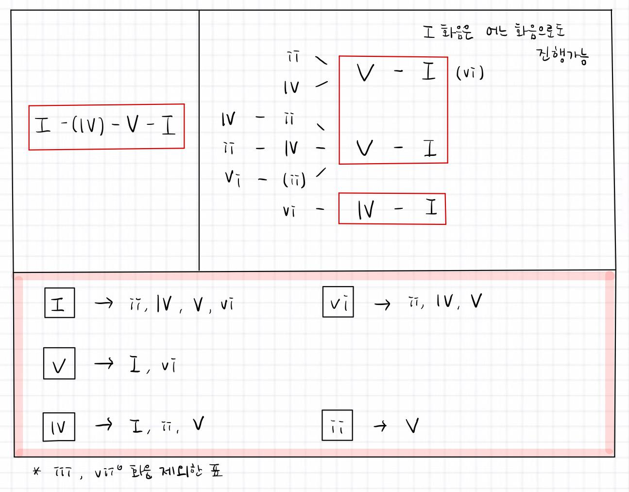 ③ Ⅳ화음과 ⅱ화음은 Ⅴ화음 앞에 사용됩니다. ( Ⅳ-Ⅴ, ⅱ-Ⅴ )