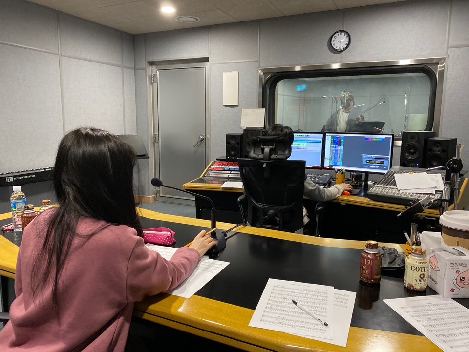 이제 곡은 완성되었고 보컬 녹음만 남겨두고 있었어요. 보컬은 EP 1집에 수록된 '슬픔의 전주곡'을 불러주신 임세민 님에게 다시 부탁드렸어요. 보컬 디렉팅 용 악보를 시벨리우스로 만들어서 출력하고 스튜디오로 향했습니다. 녹음 하는 내내 달달하고 감미로운 음색에 귀호강을 하고 왔네요.