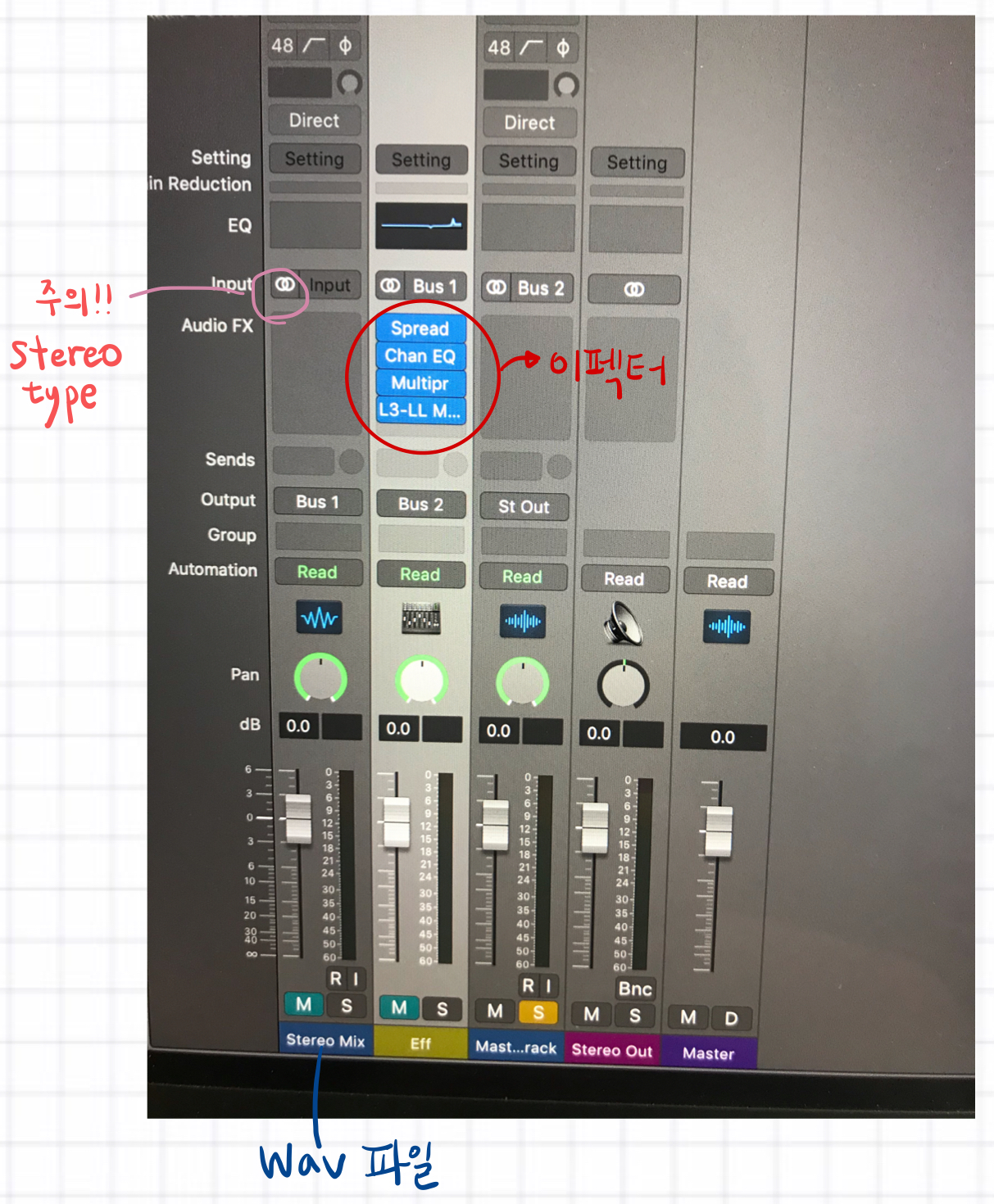 - command B 누르고 Wave → 스테레오로 되어있는지 확인!!