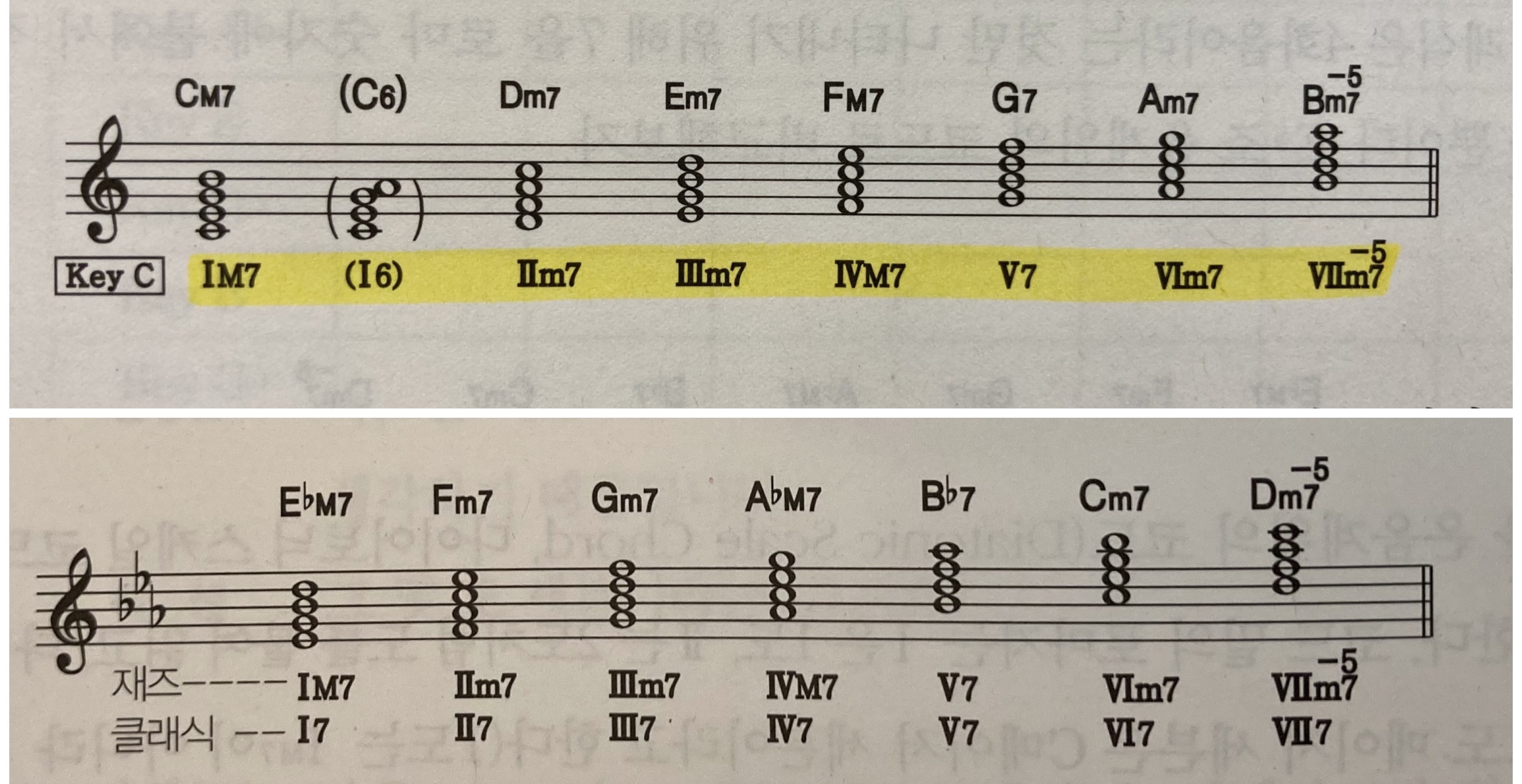 CM7은 C조에서는 IM7이지만 G조에서는 ⅣM7이므로 애드립할 때의 멜로디가 달라져요. 연주는 물론 편곡을 할 때도 지금은 어떤 조의 몇도 화음이며 코드네임은 무엇인지 늘 머릿속으로 생각해야 합니다. 저도 아직은 잘 되지 않아요. 습관이 돼서 자연스럽게 의식하게 될 때까지 연습하면 된다고 합니다.